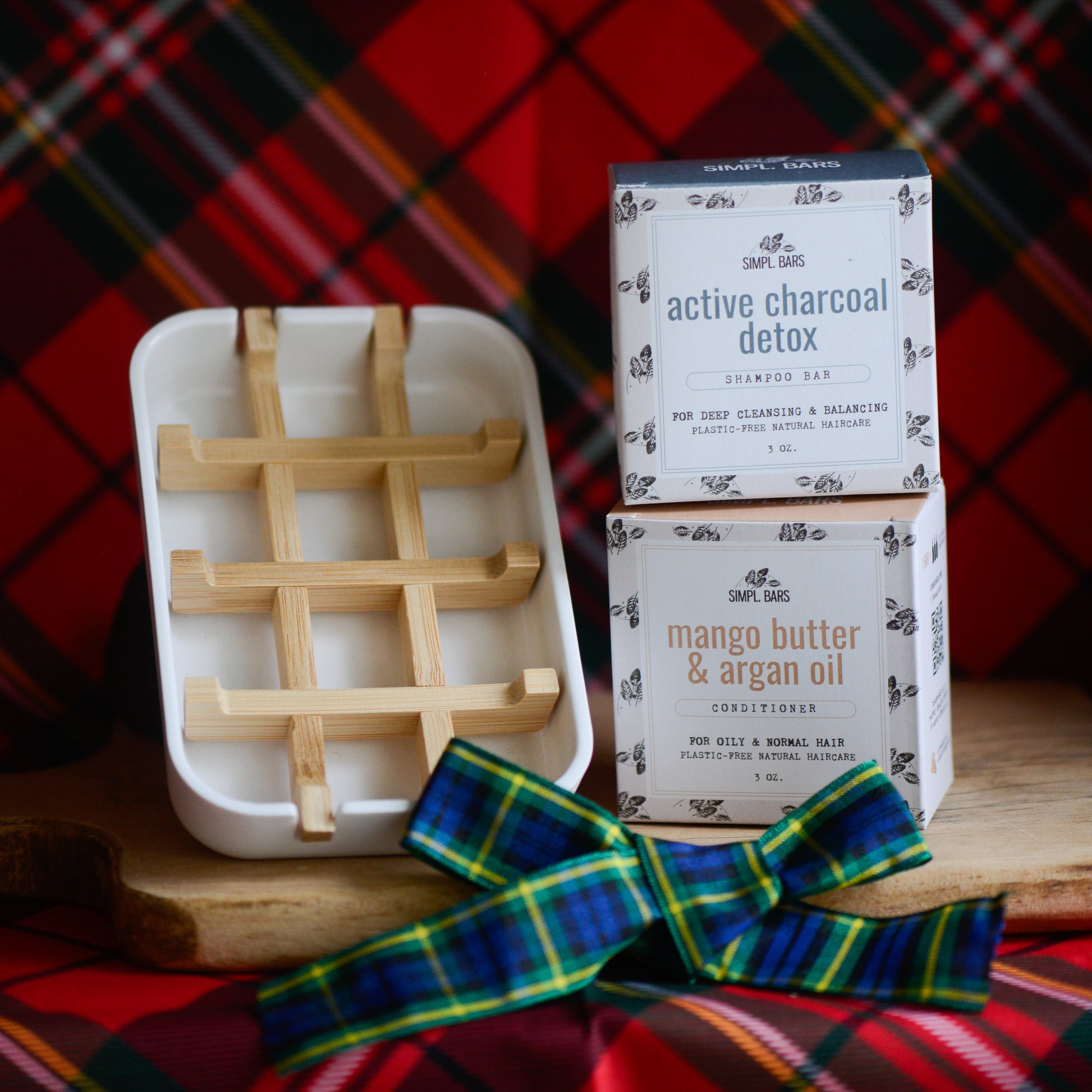 - One bamboo biodegradable dish to keep your bars dry and help them last longer.